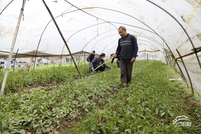 云阳网讯(记者 王彬彬 赵晓龙)3月7日,记者走进盘龙街道永安村大棚蔬菜基地,大棚内一盘盘辣椒育苗长势良好、出苗整齐、叶色嫩绿,工人们正在进行除草、施肥。
