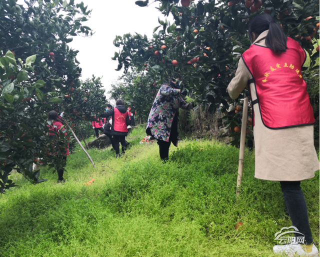受疫情影响,云阳镇柑桔园存在用工难问题,柑桔园的晚熟柑橘还未采摘。云阳镇妇联了解到这一情况后,立即组织巾帼志愿者来到柑桔园帮助开展复工复产工作。在蔬菜村的柑桔园里,志愿者们分散开来,认真听基地技术指导员刘芳菊讲解柑橘的采摘技巧,熟练技术后便开始分组操作。