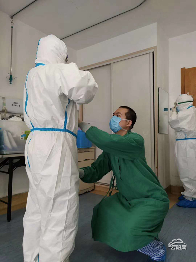 每次队员们穿脱防护服进出隔离病房的时候,他都在一旁监督,严格把关,双眼紧盯队员们的每一个动作,不放过一个细微之处,稍有不对就及时给予提醒,确保大家的安全。
