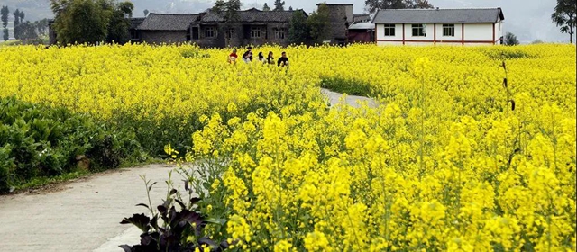 “清风吹拂金波涌,飘溢醉人浓郁香。”远远望去,那一抹金黄的光泽,与宁静的村庄、清澈的池塘相映成趣,勾勒出一幅美丽清新的乡村田园诗画。