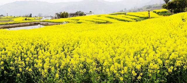 眼下,在栖霞镇的各处田野里,徐徐铺开一片片金黄。漫山的油菜花似乎都在共同诉说着春日的浪漫诗意。当行走在油菜花田间,空气中弥漫着浓浓的花香,目光所及之处,蜂飞蝶舞,花团锦簇,房前屋后的田地里、土坡中都开遍了油菜花,美不胜收。
