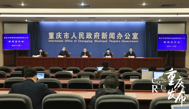 今(13)日,重庆市政府新闻办举行重庆市新冠肺炎疫情防控工作新闻发布会(第四十九场),邀请市商务委副主任彭和良,重庆海关副关长李玉,两路寸滩保税港区副总经理陈忠新,重庆商社集团党委副书记王建梅就重庆落实支持企业40条及推动外贸进出口等工作情况作通报。市委宣传部新闻发布处处长徐祖国主持新闻发布会。