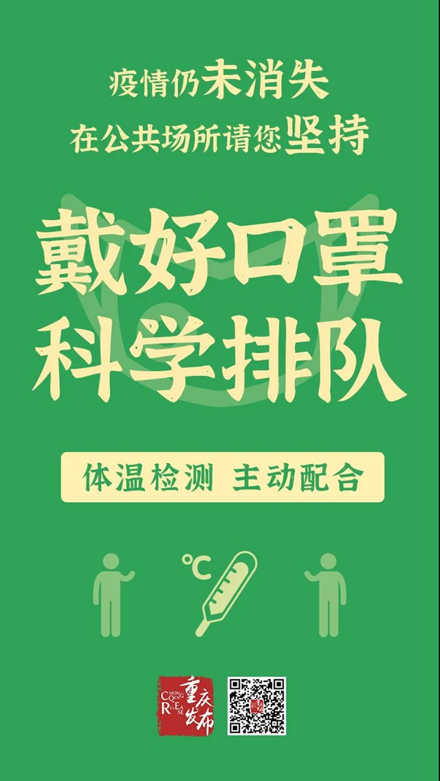 专家认为,重庆所有区县连续18日无新增确诊病例,现有在院确诊病例为零的区县增至37个,疫情防控形势持续向好。但境外疫情快速发展,外防输入工作面临新的挑战;随着逐步复工复产复市,人员流动和聚集增加带来的疫情传播风险仍然存在。