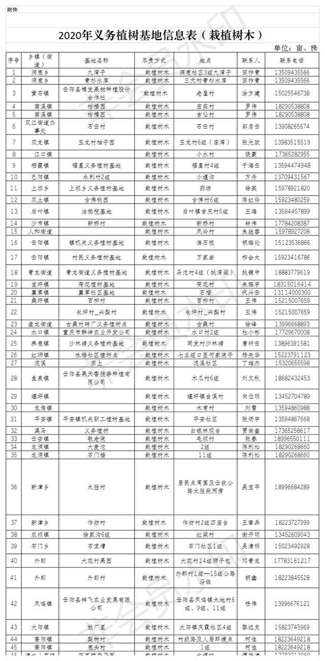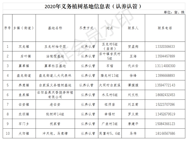 • 2020年义务植树基地信息表(栽植树木&认管认养)发布