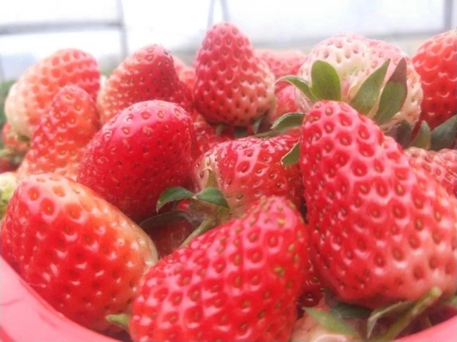 该园共有16个草莓大棚,其中有红颜、红玉、巧克力、牛奶等8个品种,采摘价格每公斤100元,2.5公斤200元,采摘期将持续到四月底。