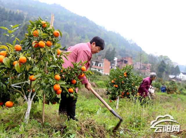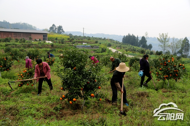 云阳网讯(记者 郑红均 朱学徽)3月18日,凤鸣镇玉带村漫山遍野的柑橘树郁郁葱葱,村民们正忙着在标准化果园里除草、施肥。
