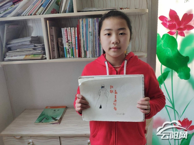 “携手抗疫,挺过寒冬,共同迎接春暖花开!”六年级周庆同学画完《致敬最美逆行者》时,在线上传到了钉钉群,赢得了家长和师生的一致好评。