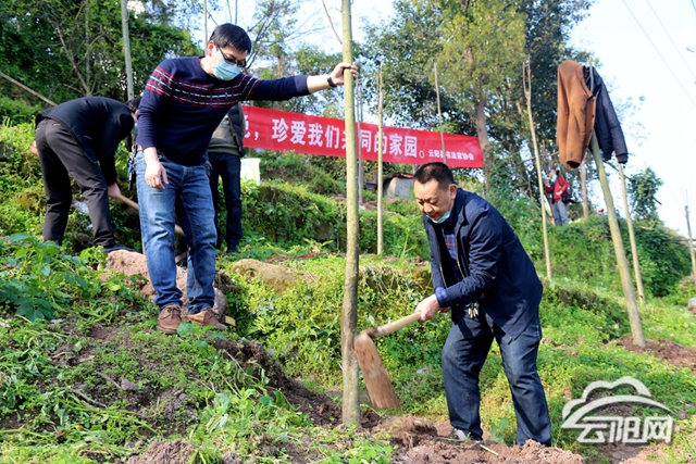 植树现场,大家分工协作、相互配合,挥锹铲土、扶苗填坑、培土浇水,个个干劲十足、热情高涨。经过一上午的奋战,400余棵栾树树苗整齐排列、迎风挺立,为公园增添绿意,让云阳更加美丽。