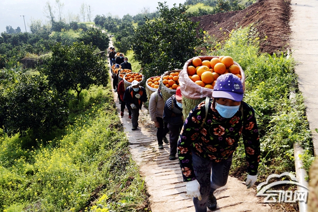 眼下,云阳20余万亩晚熟柑橘进入丰收期,养鹿、平安、江口、普安等乡镇的晚熟柑橘喜获丰收,预计总产量达到9万吨,目前通过线上线下销售了6万吨,预计晚熟柑橘总产值达到4.5亿元。(王彬彬 摄)