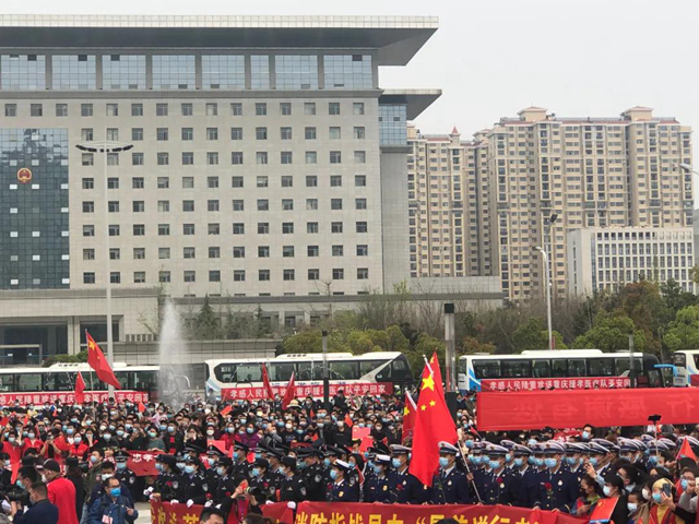 当他们离开时,湖北省孝感市以最高礼遇护送医疗队员们,送别援孝勇士!