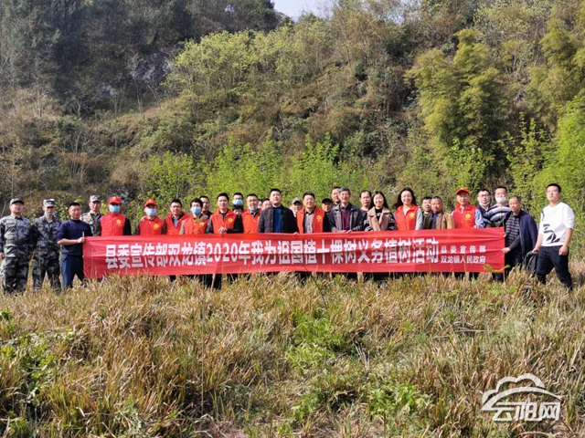 3月19日,县宣传部、双龙镇政府、镇司法所等单位共105余名干部职工、民兵和志愿者到双龙镇双河社区、沿溪村,开展“我为祖国植10棵树”活动。