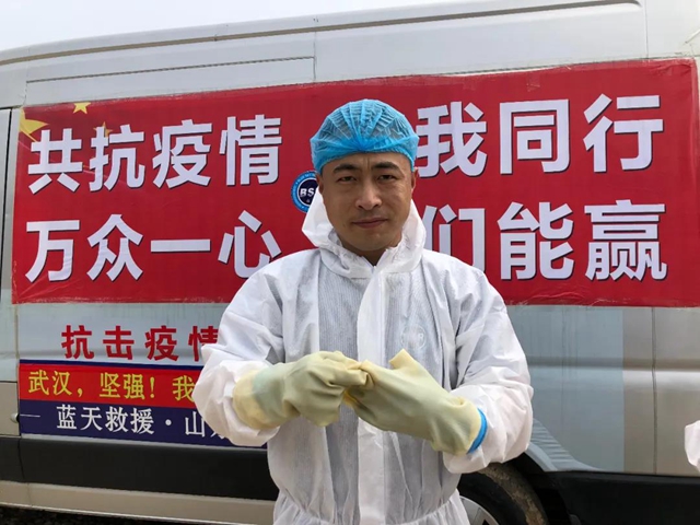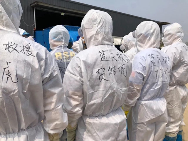 在这群身穿防护服手持弥雾机的蓝天队员中