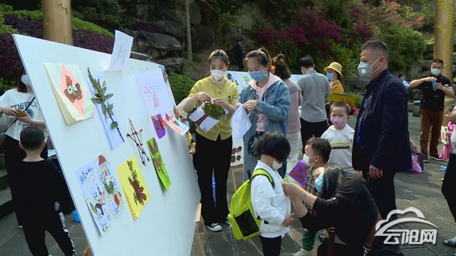 在现场,100个家庭认养了100棵银杏、黄葛、桂花、樱花、香樟、朴树等树木,用爱心与责任呵护树木茁壮成长。小朋友们还和爷爷奶奶、爸爸妈妈一起,制作树叶画,亲近大自然。