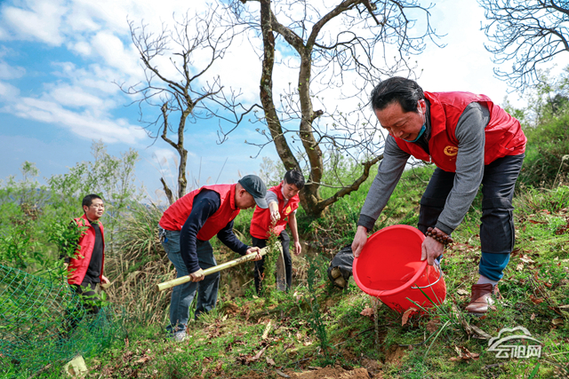 在泥溪镇长柏村,志愿者们两人一组、配合默契,一起挥锄铲土、扶直苗木、培实新土、提桶浇水,每一道工序都一丝不苟,在大家的共同努力下,共栽下柏树100棵。县摄影家协会的志愿者们还拿出随身携带的“长枪短炮”,用镜头记录下云阳人民践行生态优先、绿色发展理念的劳动身影。