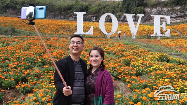 走进花千谷,映入眼帘的是正处盛花期的金盏菊,山坡、田野被成片的花朵装扮得花团锦簇。清新的嫩黄、热烈的金黄,深浅交融,层次分明,如多彩锦缎,似流云璃彩,尽显春日浪漫。花田小径里,游客们徜徉于花海之中,或闲散踱步,或闻香识花,不时还定格下美好瞬间,春光大美,每个人都流连忘返。除了本地市民外,还有不少来自万州、开州的游客。万州游客黄河和妻子一起慕名而来。“春暖花开,草长莺飞的时节,我们专程从万州来云阳花千谷玩,一路上都是美丽的风光,给我们留下了深刻的印象。”游客黄河表示。