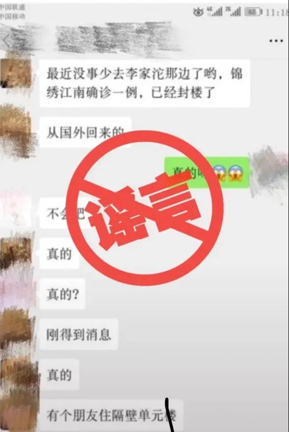3月31日,微信群传播一则消息,称“李家沱锦绣江南确诊1例,已经封楼了”。