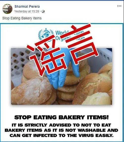 谣言2:世卫组织称食用烘焙食品易感染新冠病毒