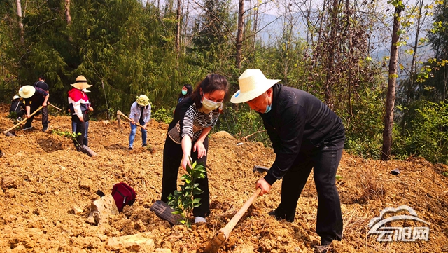 “要把这个柑橘苗下面的黑袋子摘下来,把底层的原土轻轻拍下来一部分,使柑橘苗根系和坑里的新土充分接触,根系才壮实。”植树现场,一名农户正在指导两名年轻的党员栽种柑橘苗。党员们三两人一组,有的挥舞锄头挖坑,有的蹲下身子用双手扶直树苗,有的一手提水桶一手为树苗浇水……经过一上午的辛勤劳作,1000余株柑橘迎风摇曳,染绿了这片山坡。周边群众见此情景,也纷纷自发加入到植树队伍中,共同为家乡增添一片绿色。