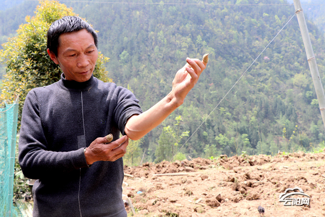 这是上坝乡生基村贫困户胡兴财的一双手:因骨折弯曲变形,黝黑又粗糙,暴起的青筋像一道道深深的沟壑。很难想象几年前,这双手还握着方向盘。