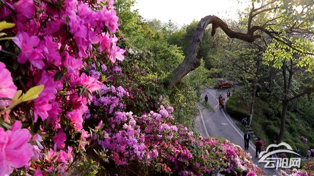 县公园管理所负责人介绍:梨园路沿线共培植杜鹃超过万株,有春鹃、夏鹃、西洋鹃三个品种,这段时间正处盛花期的为春鹃,也是公园内接力梨花的又一道特色春景,花期可持续到四月底。