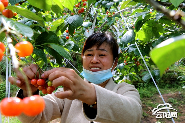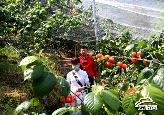 “我家种了1.3公顷樱桃,现在已成熟,每天都有很多游客进园采摘,预计今年产量有2250公斤,按照目前每公斤100元来计算,总收入还是非常可观的。”正在地里卖樱桃的果农王道忠开心地说。