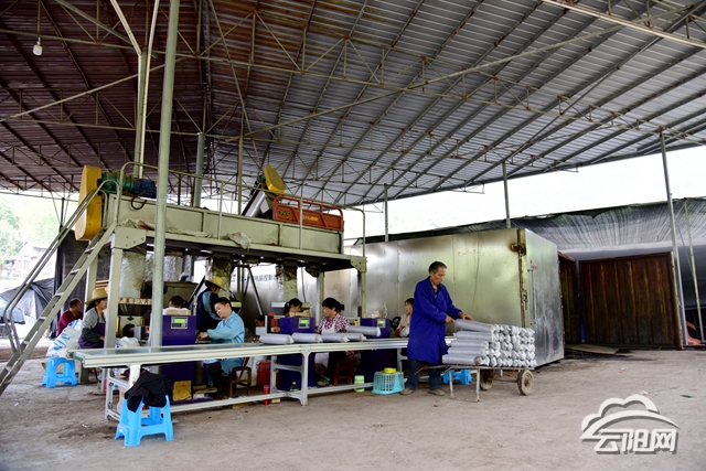 香菇基地的发展壮大直接和间接带动了当地63户贫困户增收就业。桐林社区3组的贫困户于海近两个月一直在香菇基地务工,在装袋机流水线上的机位上,他一边麻利地使用扎口机给菌棒封口,一边告诉记者,村里发展了产业,来这做工,每月能挣近3000元,还能就近照顾小孩,一点儿不比在外头务工差。