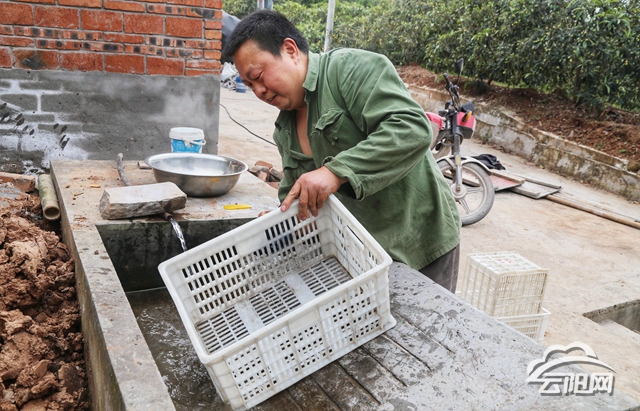 在熊小刚家门口,订货的商家早已将1200个果框提前运达,以便在枇杷成熟时第一时间将采摘下的新鲜枇杷运走。“来我们村订购枇杷的客商很多,周围几家果农的枇杷早就订购完了。我家空地大,所以买家都把果框暂时集中放在我这儿。这只是一部分果框,后面还会有几千个果框要运来。”熊小刚一边清洗果框一边与记者分享他的喜悦,“今年枇杷长得好,汁多肉厚,口感很纯正。”