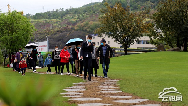 春日的云阳,生机盎然,风光优美,满目葱茏……在导游的带领下,白衣勇士们首先来到了月光草坪,一边听着导游的介绍,一边欣赏江边美景,与春天合影留恋。尽管下起了雨,但雨中赏景也是别样风情。援鄂医护人员们登上了登云梯,俯瞰云阳山水,在“三峡梯城”中享受秀美山河。进入三峡文物园,医护人员们仔细聆听导游解说,一边看一边拍,一边赞叹云阳厚重的历史底蕴。走进博物馆,馆内的展品吸引了大家关注的目光。在“石来运转”主题公园,大家穿梭其中,探索迷宫的奥秘。