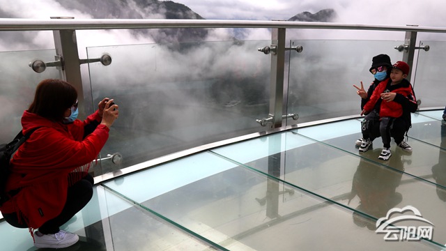 “似漫步云端天际之间,步步惊心!雾中赏景,更是妙如仙境。”来到龙缸景区的云端廊桥,早上的浓雾还未散去,大家更是兴奋不已,纷纷踏上桥面感受龙缸的险峻。胆大的还坐上了悬崖秋千,在空中欣赏山林幽秀景色,惊险又刺激。