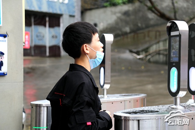 在云阳职教中心校门口,县公安局网监大队、青龙派出所民警,县人民医院驻校医生和学校工作人员正严阵以待。校门口共设置了2条入校通道,地上标有1米间隔线,同时设有人体红外测温门和人脸识别进出系统,每一位学生的信息已通过前期摸排和核验录入人脸识别进出系统,学生进门时需进行人脸识别,不符合返校条件者,将被带入校外隔离观察室。