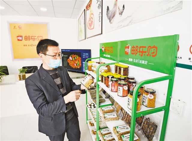 巫山县双龙镇洞桥村电商平台,工作人员正在整理本土农产品。截至目前,该平台已累计实现本地土特产销售额50多万元。(摄于4月3日)记者 郑宇 摄