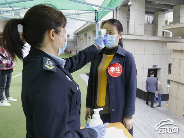 对于体温≥37.3℃的学生,工作人员将及时通知班主任,同时走专用通道将其送至校外临时隔离区。学校消毒人员对校园校门、测温通道和隔离观察室等场所及时消毒处理。