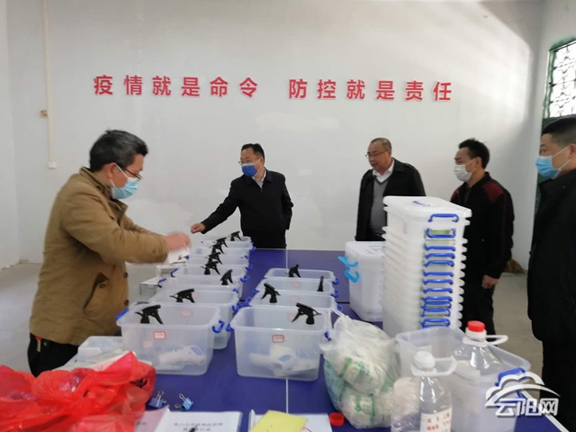 在实地查看了解了学校进出人员记录、学生教室、教师办公室、餐厅、图书室等场所后,镇领导就口罩物质、消毒液配备、校园安全防范设施、教学管理、校园特色文化建设、体育强身等方面进行了检查指导,强调共同携手同心抗“疫”,确保了学生生命安全和身心健康。并为水口小学、中学赠送一次性医用防疫消毒液300斤、酒精100斤、口罩3000个。