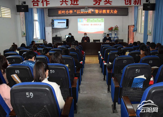 云阳网讯(通讯员 王军)4月23日,后叶小学党支部召集全校84名教职工,结合新近发生的一名机关干部和全国教育系统发生的五起违纪违法典型案例,举行“以案说纪、以案说法、以案说德、以案说责”警示教育大会。
