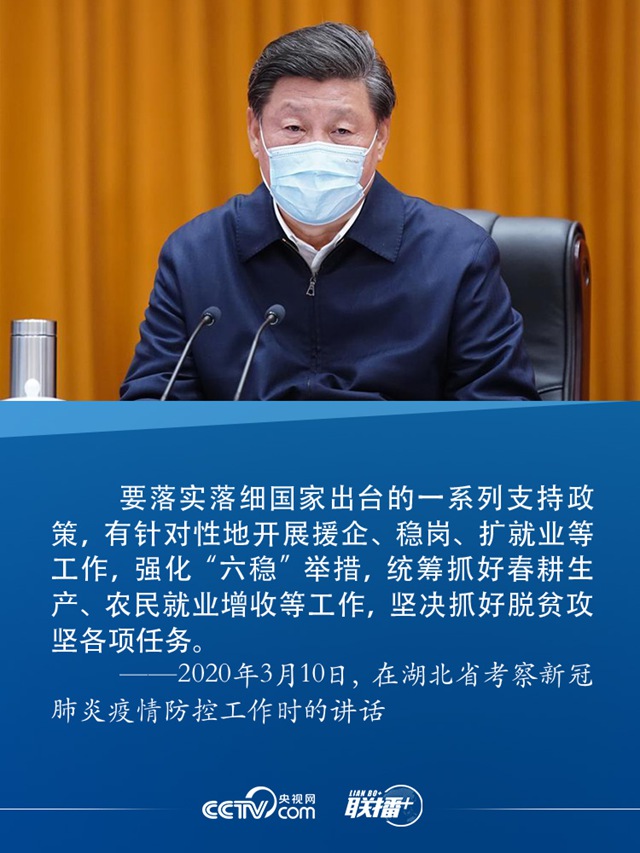 3月10日,在抗击新冠肺炎疫情的关键时刻,习近平专门赴湖北武汉考察疫情防控工作,在战“疫”最前线指挥“有针对性地开展援企、稳岗、扩就业等工作”。