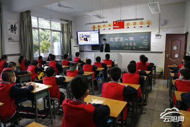 不上新课,不讲试题。8点左右,该校组织各班围绕“爱国主义教育、讲述英雄人的抗疫故事、心理健康教育、观看《开学第一课》视频”为主题,进行了开学复课的第一课。