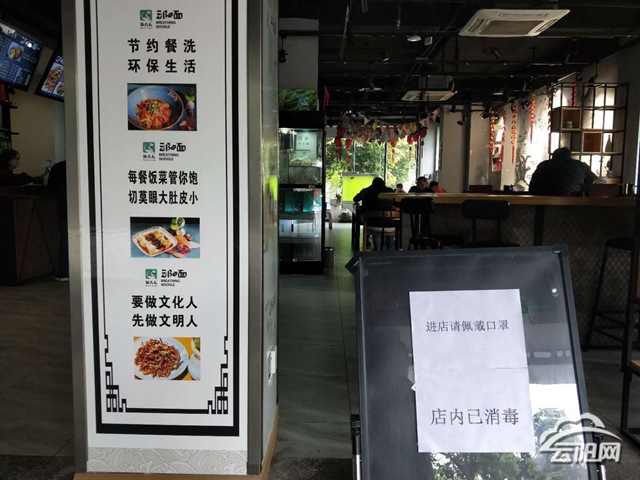 为确保店内环境卫生,云阳面体验店要求所有员工必须持有健康证才能上岗,上班期间着工作服,戴口罩,上下班接受两次体温检测。