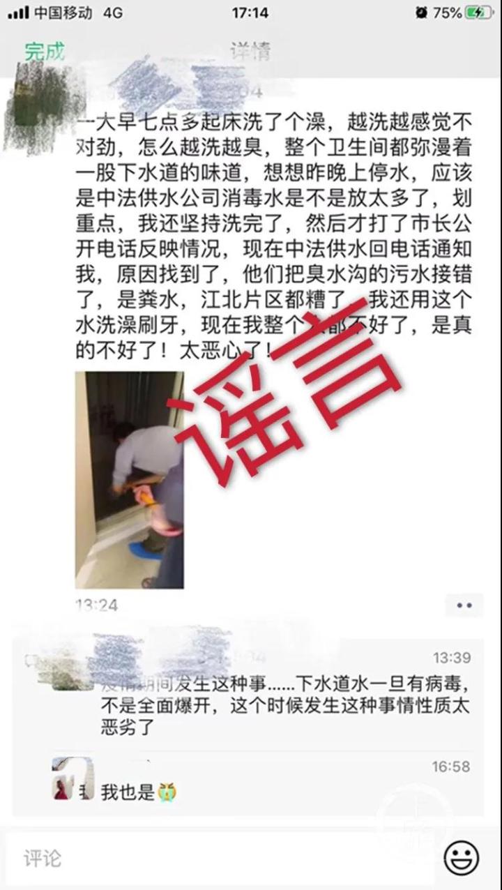 4月27日,一则关于江北区供水异常的截图在微信朋友圈里流传。截图中某居民称,由于中法供水接水管道施工出现事故,将污水管道接成了粪水,影响了整个江北区 。