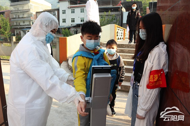 • 云阳网讯(通讯员 万柯言)4月27日,桐林小学四年级到六年级的学生开启返校复课,“小神兽们”压抑不住激动的心情早早来到校门处排队。
