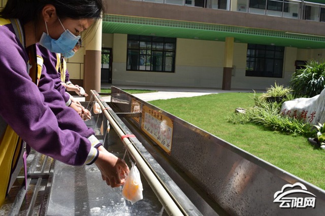 体温正常的学生进校门后,通过有序排队、“七步洗手法”洗手后进入班级。班辅教师组织晨检,再次检测学生体温、审核学生健康档案、收集《返校健康承诺书》等相关资料。随后组织开展错峰错时入校、定区域活动、定点如厕培训,各班学生在校园规定位置进行课间活动、错时如厕,并保证人与人之间间距一米以上。