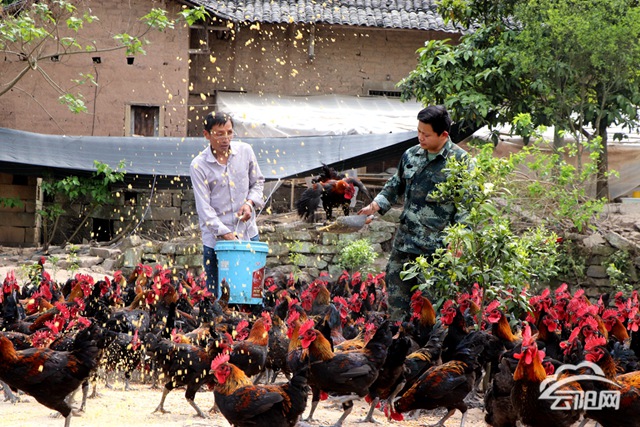 这边的柑橘园还未投产,另一边,熊道发又带着退伍转业回家的儿子谋划起第二产业。经过一番合计,父子二人一致决定要大胆摸索“林下养鸡”种养模式。圈地、建鸡棚,熊道发和儿子的肉鸡养殖就这样干了起来。他们先后购买了两批鸡苗,共计4000余只。熊道发说,鸡苗的品种是青脚鸡,属于土鸡的一种。由于是散养,它比普通肉鸡味道更鲜美。鸡苗吃的是粮食和青饲料,没有任何污染,品质更加放心。目前,熊道发家的第一批鸡苗足足有3.5至4公斤,即将出栏销售。