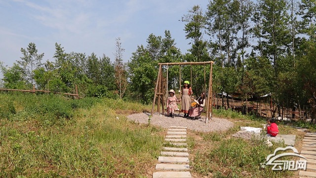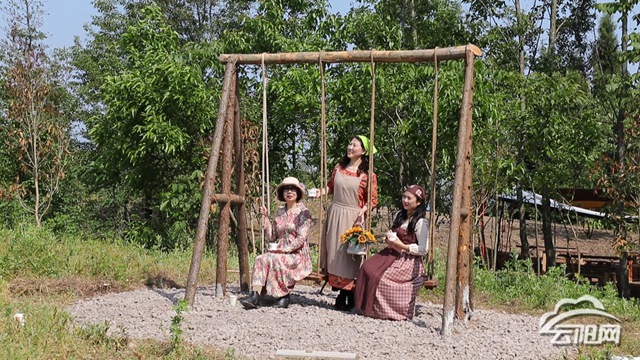 除了主题摄影,游客们还能荡秋千、玩跷跷板,玩累了到农庄旁的小森林散步、休憩、采桑葚。