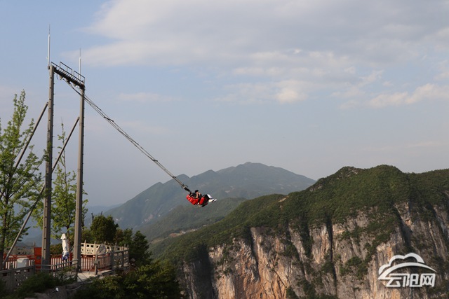 欣赏风景之余,记者被山谷传来的尖叫声吸引,原来是游客在体验“悬崖秋千”,顾名思义,“悬崖秋千”安装在距离石笋河上方600米。按奈不住内心的小激动,记者亲测,坐上了“悬崖秋千”,瞬间向悬崖外荡去,失重状态下带给人以惊险刺激的感受,全程10分钟坐下来已经“腿软”了,记者打听到,“悬崖秋千”目前优惠票价为50元/人。