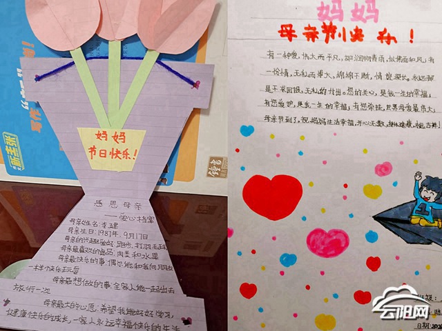 为了让孩子们从小懂得体谅母亲的辛苦与付出,弘扬中华民族孝敬父母的传统美德,该校为孩子们布置了特别的作业:召开一次“感恩父母”主题班会;制作一份《感恩母亲爱心档案》送母亲;向母亲道一声感谢和祝福;为母亲做一件力所能及的事;讲一个“我和母亲的故事”;送母亲一份自制的节日礼物。“妈妈,我爱你!等我长大了,我会成为您和爸爸的大树,为你们遮风避雨。”孩子们写下自己的心里话,制作康乃馨花束等献给妈妈。一句句感恩的话语,一个个感动的故事,一份份深情的礼物,表达了孩子们对母亲的无限爱意。