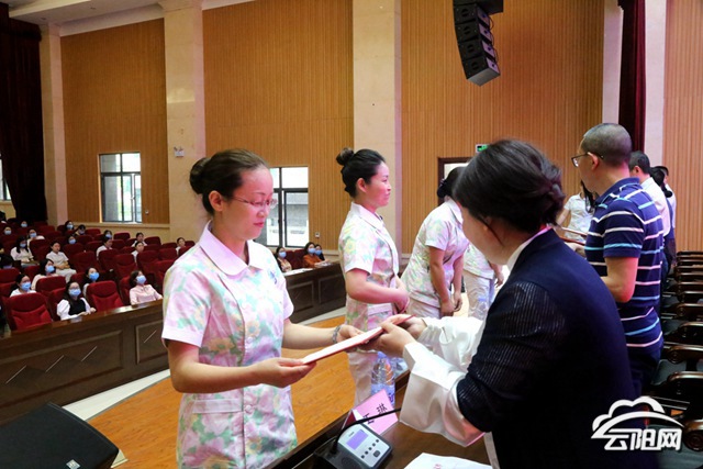 据悉,今年护士节的主题是“致敬护士队伍,携手战胜疫情”,活动中,县中医院为12名优秀护理工作者颁发了荣誉证书,还颁发了优质护理服务病区的科室奖牌。县中医院援鄂代表唐和平与同事分享了自己在援鄂期间的感人故事,赢得了台下阵阵掌声。活动最后,医院护理工作人员带来了精彩八段锦表演,展示了传统功法的魅力。