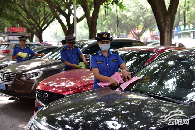 当天,执法人员在城区人流、车流量大的场所向市民发放宣传资料,宣讲政策法规,引导广大市民自觉遵守停车管理秩序。执法人员采取教育和处罚相结合的措施,对占用盲道违停机车、人行道停放的车辆第一时间联系车主进行移走,对车主拒不配合或联系不上车主的机动车予以二百元罚款或强制拖移。