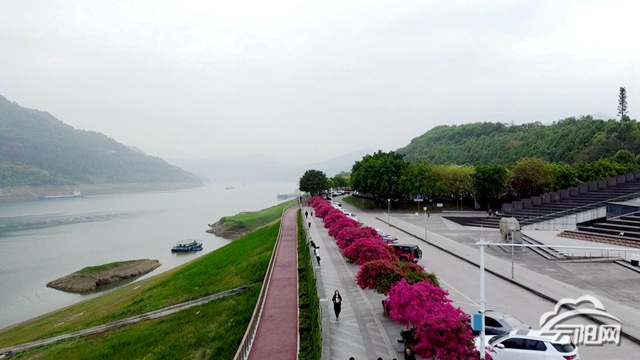 云阳:三角梅绽放江畔 外滩大道化身鲜花长廊