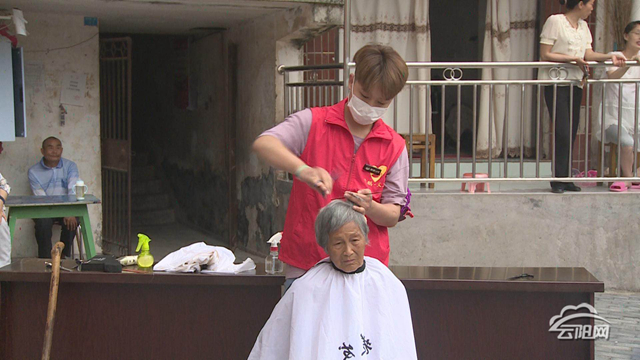 活动邀请了爱瑞阳光眼科医院医生、专业理发师为社区居民进行义务诊断、义务理发;社区志愿者为社区空巢老人、残疾人清扫居住环境,喷洒消毒水,还为老人按摩、修指甲,老人们表示很开心、幸福。