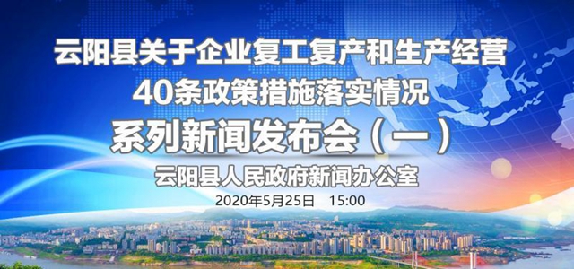 云阳网讯 5月25日(星期一)下午3:00,云阳县人民政府新闻办公室将举行云阳县关于企业复工复产和生产经营40条政策措施落实情况系列新闻发布会第一场。进一步解读在疫情期间阶段性降低企业用电、用水、用气成本的政策措施,通报目前我县落实情况和下一步工作打算。邀请县发展改革委副主任彭武、县城市管理局副局长罗伦、国网重庆云阳供电分公司副总经理傅军、县天然气公司副总经理曾蓉介绍相关情况,并回答记者提问。届时,云阳县融媒体中心将通过智慧云阳APP、云阳网和云阳手机台等全媒体平台进行视频、图文直播。