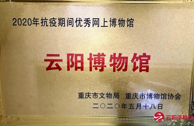 6.【祝贺!云阳博物馆又获奖】在重庆“5·18国际博物馆日”暨第十一届文化遗产宣传月活动中,云阳博物馆荣获“2020年抗疫期间优秀网上博物馆”“2020年度重庆市文物保护优质工程”“重庆市最佳创意产品奖”“优秀参展单位”等殊荣。